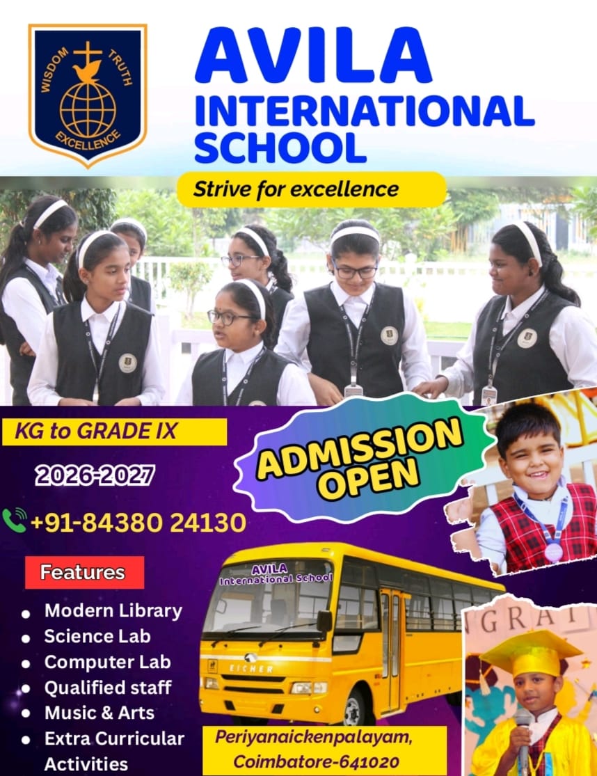 Avila International School (ICSE) is currently accepting applications for the Academic Year 2025-2026, welcoming students from Pre-KG to Grade VI. Our school warmly welcomes students of all nationalities, offering a diverse and inclusive learning environment. The medium of instruction at Avila is English, while Tamil, Hindi, and French are taught as second languages. Our comprehensive academic curriculum, combined with an array of co-curricular activities, greatly benefits students from different backgrounds.