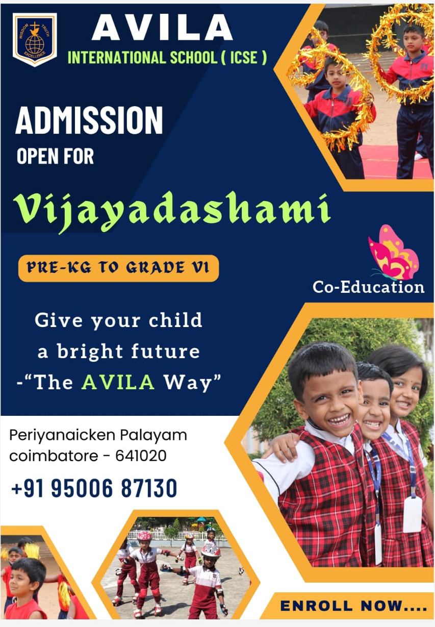 Avila International School (ICSE) is currently accepting applications for the Academic Year 2025-2026, welcoming students from Pre-KG to Grade VI. Our school warmly welcomes students of all nationalities, offering a diverse and inclusive learning environment. The medium of instruction at Avila is English, while Tamil, Hindi, and French are taught as second languages. Our comprehensive academic curriculum, combined with an array of co-curricular activities, greatly benefits students from different backgrounds.